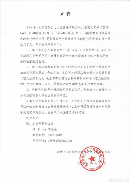 明星合同是明星们演艺生涯中的重要组成部分。了解明星合同,有助于我们更好地了解明星们的收入来源和权益保障。让我们一起期待,明星合同在未来能够更加完善,为明星们创造更加美好的演艺生涯。